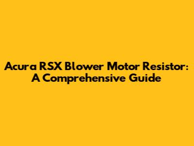 Acura RSX Blower Motor Resistor: Troubleshooting & Replacement Guide