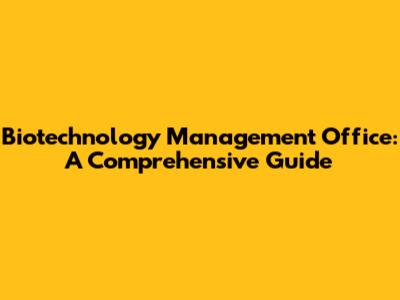Biotech Management Office: A Comprehensive Guide