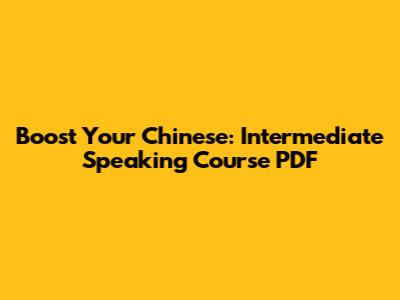 Boost Your Chinese: Intermediate Speaking Course PDF