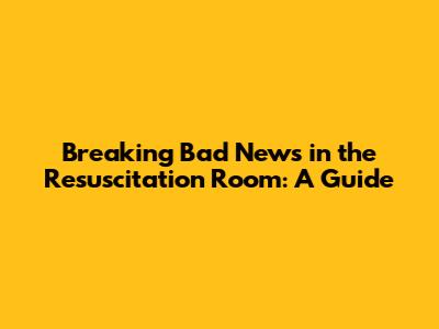 Breaking Bad News In The Resuscitation Room: A Guide