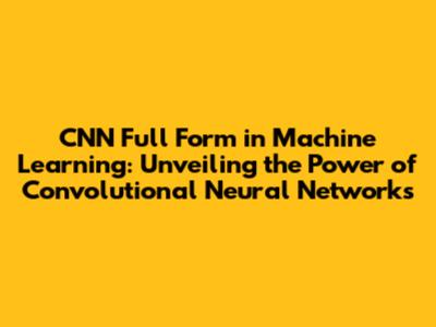 CNN Full Form In Machine Learning: A Deep Dive