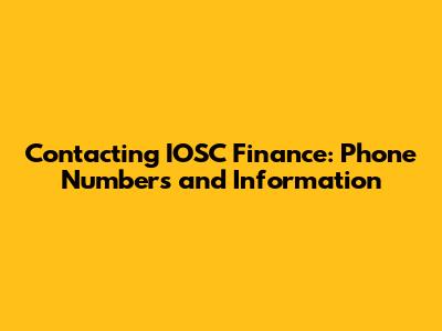 Contacting IOSC Finance: Phone Numbers And Information