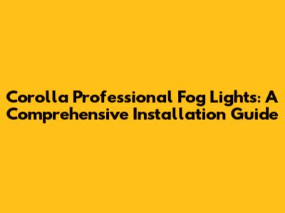 Corolla Fog Lights: Professional Installation Guide