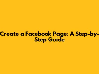 Create A Facebook Page: A Step-by-Step Guide