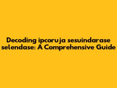 Decoding Ipcoruja Sesuindarase Selendase: A Comprehensive Guide