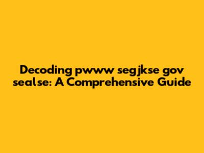 Decoding Pwww Segjkse Gov Sealse: A Comprehensive Guide