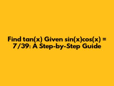 Find Tan(x) Given Sin(x)cos(x) = 7/39: A Step-by-Step Guide