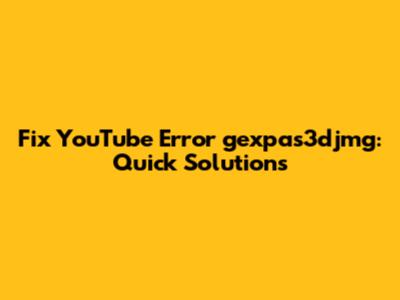 Fix YouTube Error Gexpas3djmg: Quick Solutions