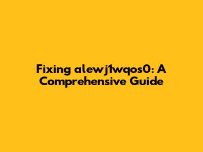 Fixing Alewj1wqos0: A Comprehensive Guide
