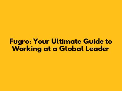 Fugro: Your Ultimate Guide To Working At A Global Leader