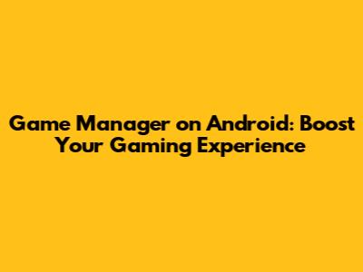 Game Manager On Android: Boost Your Gaming Experience