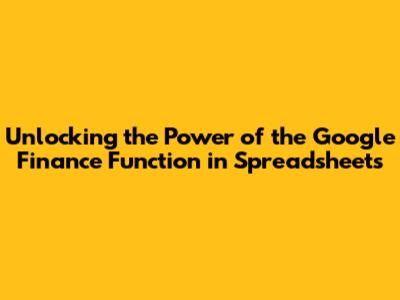 Google Finance Function: A Quick Guide