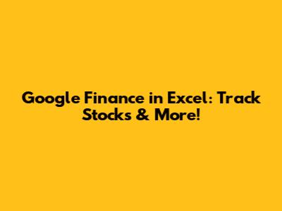 Google Finance In Excel: Track Stocks & More!