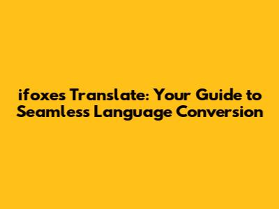 Ifoxes Translate: Your Guide To Seamless Language Conversion
