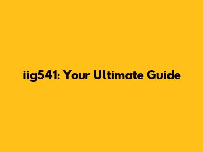 Iig541: Your Ultimate Guide