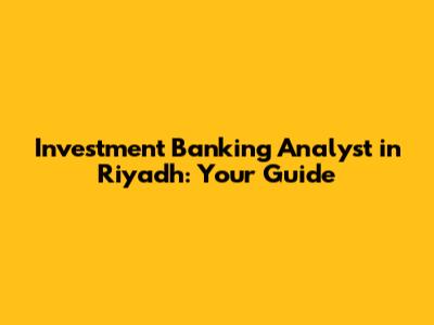 Investment Banking Analyst In Riyadh: Your Guide