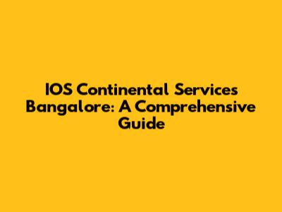 IOS Continental Services Bangalore: A Comprehensive Guide