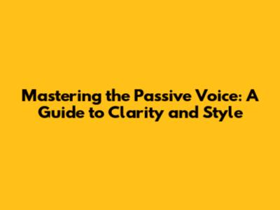 Mastering The Passive Voice: A Guide To Clarity And Style