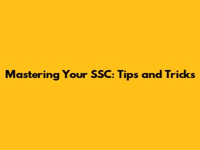 Mastering Your SSC: Tips And Tricks