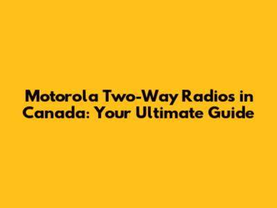 Motorola Two-Way Radios In Canada