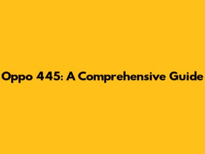 Oppo 445: A Comprehensive Guide