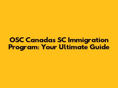 OSC Canada's SC Immigration Program: Your Ultimate Guide