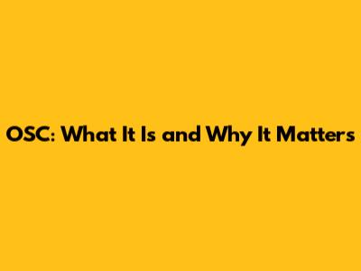 OSC: What It Is And Why It Matters