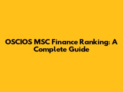 OSCIOS MSC Finance Ranking: A Complete Guide