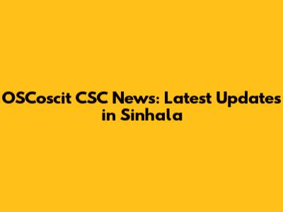 OSCoscit CSC News: Latest Updates In Sinhala