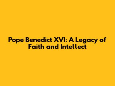 Pope Benedict XVI: A Legacy Of Faith And Intellect