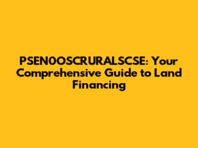 Understanding PSEN0OSCRURALSCSE and Land Financing Basics