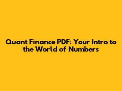Quant Finance PDF: Your Intro To The World Of Numbers