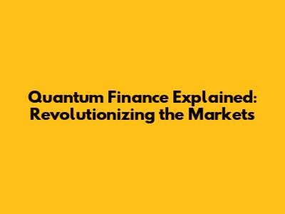Quantum Finance Explained: Revolutionizing The Markets