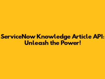 ServiceNow Knowledge Article API: Unleash The Power!