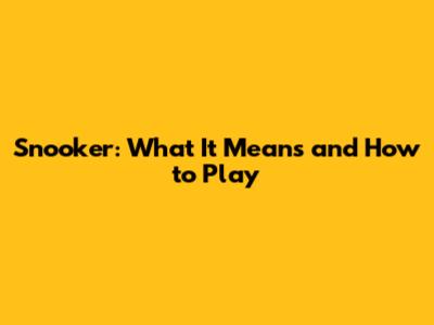 Snooker: What It Means And How To Play