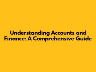 Understanding Accounts And Finance: A Comprehensive Guide