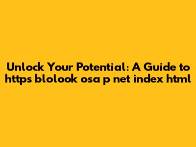 Unlock Your Potential: A Guide To Https Blolook Osa P Net Index Html