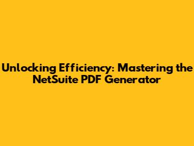 Unlocking Efficiency: Mastering The NetSuite PDF Generator