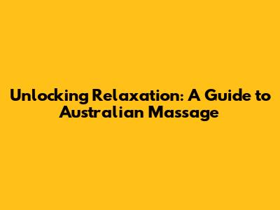 Unlocking Relaxation: A Guide To Australian Massage