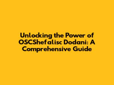 Unlocking The Power Of OSCShefalisc Dodani: A Comprehensive Guide