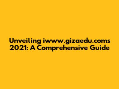 Unveiling Iwww.gizaedu.com's 2021: A Comprehensive Guide