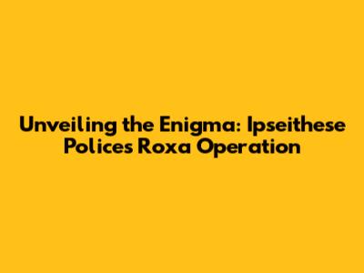 Unveiling The Enigma: Ipseithese Police's Roxa Operation