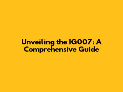 Unveiling The IG007: A Deep Dive Into Features, Specs, And More