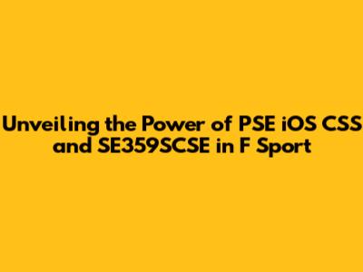 Unveiling The Power Of PSE IOS CSS And SE359SCSE In F Sport