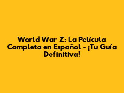 World War Z: La Película Completa En Español - ¡Todo Lo Que Necesitas Saber!